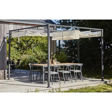 Telt, pavilloner og pergolaer er beregnet til solafskærmning og tåler derfor ikke kraftig vind. Det anbefales derfor, at taget/coveret fjernes i blæsevejr.