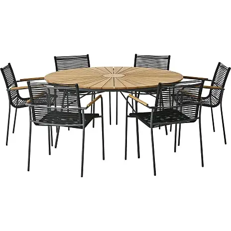 Teak er den bedst egnede træsort til havemøbler, da det er særdeles olieholdigt og derfor kan opbevares ude året rundt. Overfladen patinerer flot med tiden. Du kan dog vælge at afrense og give træet olie, hvis du ønsker en gylden farve.