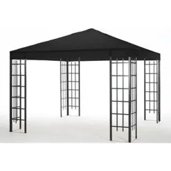 Pavillonen måler 3×3 meter. Stellet er lavet af aluminium. Med til pavillonen følger et tag og to sider. Coveret til taget og siderne er sorte og er lavet i polyester. Vinduerne på siderne er lavet af PVC.