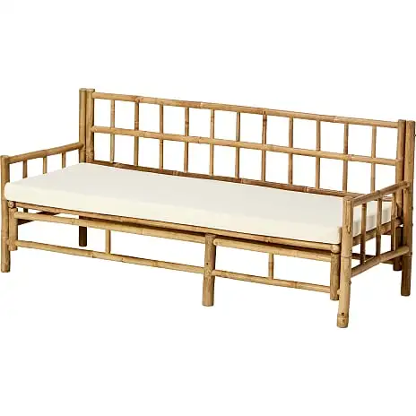 Denne sofa, der leveres med hynde med hvidt betræk i 70% bomuld /30% polyester, vil du helt sikkert komme til at bruge hele sommeren – enten placeret på din yndlingsplads i haven eller som bænk ved havebordet – og der er basis for at høre nogle gode historier under vejs. Bemærk at bambusmøbler ikke tåler at stå ude hele året og skal endvidere stå overdækket ved konstant regn. Uden for sæsonen anbefales det, at bambusmøblerne placeres i udestue eller i garage, da bambusmaterialet er følsomt overfor store temperatursvingninger.