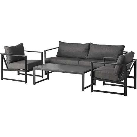 Marinella er et moderne og stilrent lounge sofasæt som ligger op til en god aften i hyggeligt samvær eller til total afslapning med en god bog. Hvis man ønsker at indrette sin terrasse eller havestue i et moderne og lækkert look, så er Marinella loungesættet det helt rette sæt. Sættet består af en 3-personersofa, 1 bord og 2 stole. Med dens robuste aluminiumsramme samt vandafvisende overflade, som man nemt kan tørre af, har man et holdbart og vedligeholdelsesfrit loungesæt til flere sæsoner.