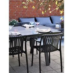 Havemøbler, der er lavet i plast eller formstøbt plast, ligner traditionelt flettede møbler. Materialet er robust og vejrbestandigt, så dit havemøbel har en lang holdbarhed, samt materialet ikke mister farve af at stå ude i solen. Derudover er materialet let at vedligeholde og nemt at flytte rundt på. Derfor er et havemøbel i dette materiale meget praktisk at have stående hjemme på din terrasse.