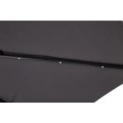Det flotte og robuste sorte aluminiums stel gør parasollen meget holdbar. Denne parasol vil pynte på enhver terrasse i dens elegante aluminiumsstel samt grå polyester dug. Stoffet består af 250 g/m^2 polyester. Parasollen kan nemt åbnes og lukkes ved blot at dreje på stangen.