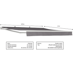 Denne markise er perfekt til de lidt mindre terrasser eller sommerhuset. Markisen er lavet af et robust aluminiumsstel, med støttearme for at sikre stabiliteten. Der medfølger beslag, for at den nemt kan monteres på væggen. Markisen skal betjenes manuelt med det medfølgende håndsving. For at kunne nyde din markise i mange år, skal den være kørt ind, hvis det regner, tordner, sner, fryser eller blæser.