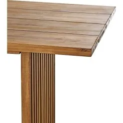 Skab en lys og lækker spisestue med Skagen spisebordet. Den massive bordplade bliver løftet af brede bordben med en lamel-lignende effekt. Designet er et moderne bud på et træspisebord i olieret akacietræ.