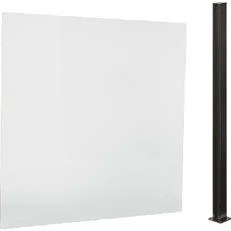 6 mm hærdet klar glasplade til SUPERROOF SMART FENCE. Medfølger i kassen glaslister til isætning i SUPERROOF SMART POST. Glaspladen er B 46,8 x H 92 cm. Dette giver en stolpe center til center på 50 cm.