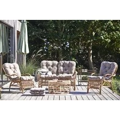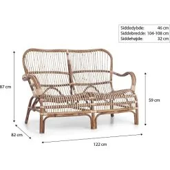Suma 2-personers loungesofa i tidløst natur farvet rattan. Sofaen er udformet i flet og er i en varm naturlig farve, som man nemt kan matche til andre møbler. Sofaens romantiske og afslappet stil passer perfekt til hyggekrogen, altanen eller terrassen. Du kan eksempelvis kombinere sofaen med loungestolen eller bordet fra samme serie, som kan være med til at skabe en naturlig og hjemlig atmosfære til en hyggestund.