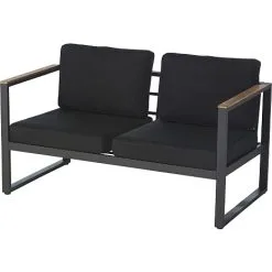 Loungesofaen er lavet i stål, som er et hårdt og stærkt materiale, som er særdeles velegnet til havemøbler, da det er et tungere materiale end f.eks. aluminium. For at give loungestolen et mere eksklusivt og smukt udtryk er der teaktræ på armlænene, hvilket gør det mere behageligt at hvile armene herpå, da man undgår stålets kolde materiale mod huden. Stål er et vedligeholdelsesfri materiale, som blot kræver en rengøring med vand og sæbe, hvor teaktræ kræver lidt ekstra behandling for at bevare den smukke gyldne farve. Lige så behageligt som det er praktisk, leveres denne loungesofa med brede og dybe sæder og ryg hynder med polyester fyld, som sikrer dig og dine nærmeste en behagelig siddekomfort og afslapning. Vi anbefaler, at du opbevarer dine loungemøbler indendørs i et tørt og ventileret rum i vinterhalvåret eller anvender et overtræk for at skåne møblerne og forlænge deres levetid.