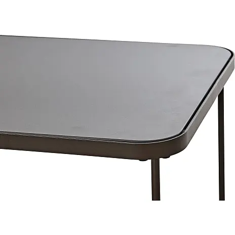 Bordets stel er lavet i stål, så bordet er modstandsdygtigt overfor det danske vejr og bordpladen er lavet i glas, og derfor kræver det heller ikke megen vedligeholdelse.