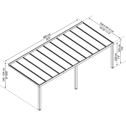- Terrasseoverdækningen har følgende dimensioner: D: 330,5-341 x H: 256,5-324 cm