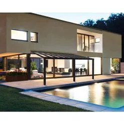 - Stort set ubrydeligt, 100% UV-beskyttet, krystalklart 4 mm solidt polycarbonat tagsystem – beskytter mod skadelig UV stråler, hagl og sne