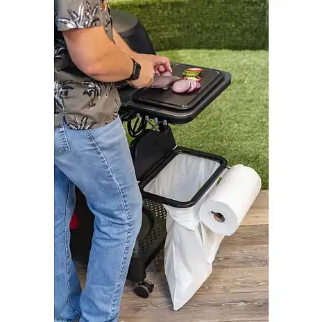 Multifunktionshylde til All-Star. Hylden giver mulighed for ekstra hyldeplads, køkkenrulleholder, affaldspose samt indeholder skærebræt. Hylden monteres let og uden brug af værktøj på en af siderne på All-Star. Mål: Skærebræt 37 x 27 cm. Materiale: sort plast og stål