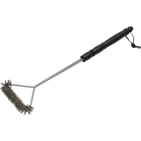 Denne Char-Broil grillbørste i stål er et praktisk redskab til at rengøre grillen efter brug. Det lange skaft gør, at den kan bruges selvom grillen er varm, uden at man brænder fingrene.