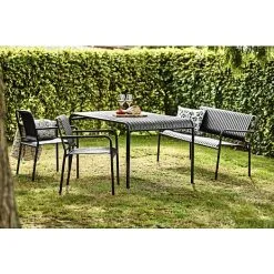Stolenes og bænkens armlæn gør det nemt at sidde og nyde den danske sommer.