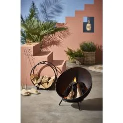 Bålfad i sort, der består af fod, skål og aske rist.