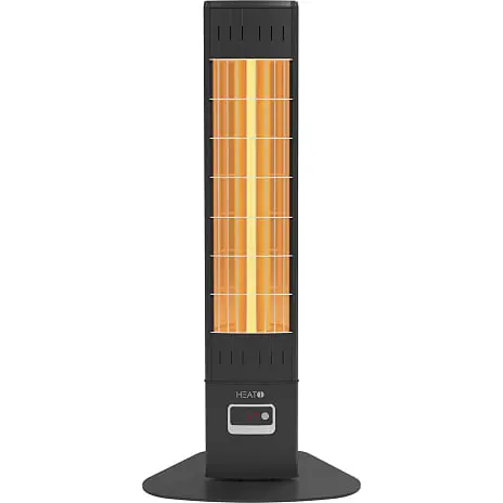 Elegant 2300 watt kraftfuld terrassevarmere til placering på gulvet, forenden af et bord eller fritstående.