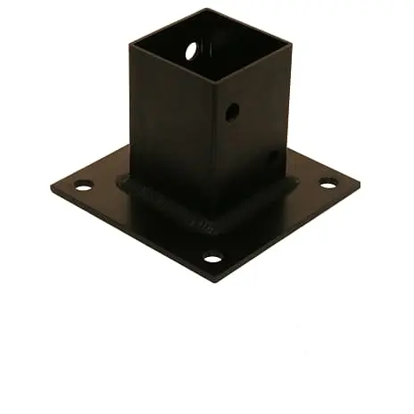 Passer til alle træstolper på 7×7 cm herunder stolpen til HORTUS glashegn, hvor montering ønskes overfast underlag. Fremstillet i pulverlakeret aluminium. Skruehullerne i foden er Ø12mm
