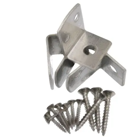 4 stk. læhegnsholdere fremstillet i 2,5 mm rustfrit stål og inkl. 8 stk. 4,0×25 mm og 4 stk. 6,0×40 mm skruer med torx ® kærv.