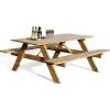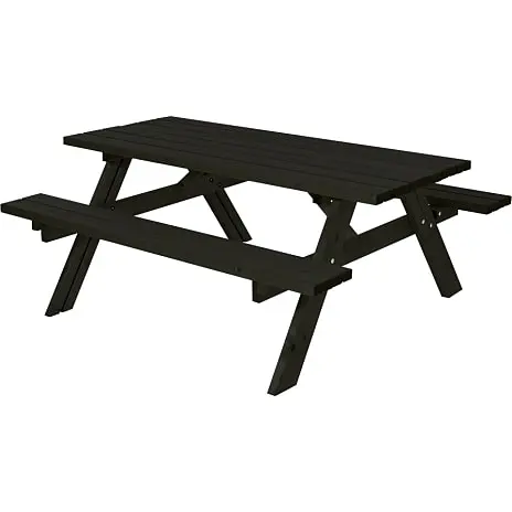 Bord-/bænksæt i trykimprægneret træ. sæder og bordplade i 42 mm tykkelse. Grundmalet sort.