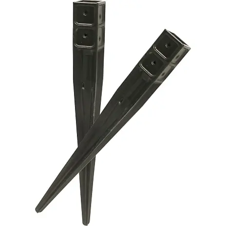 Anvendelse:Anvendes primært til forankring af hegnsstolper, havepavilloner, rutchebaner og gyngestativer, hvor man ikke ønsker, at gøre brug af støbning med beton.Ikke til bærende konstruktionerFastgørelse:En træklods placeres i stolpespyddet, der herefter slås ned i jorden. Under nedslåningen justeres stolpespyddet jævnligt i lod indtil spyddelen er helt islået. Herefter monteres træstolpen med M6 bolte.Dimension:46 x 46 mm. Højde: 55 cm