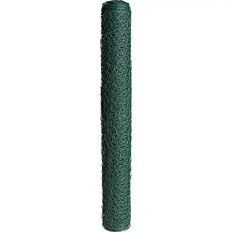 Varmgalvaniseret og plastbelagt efter vævning. Anvendelse: Hegn, hønsegårde, dekoration, understøtning af isolering, afskærmning af træer med mere. Trådtykkelse: 0,7 mm Farve: Grøn Dimensioner: Bredde: 10 meterHøjde 100 cm