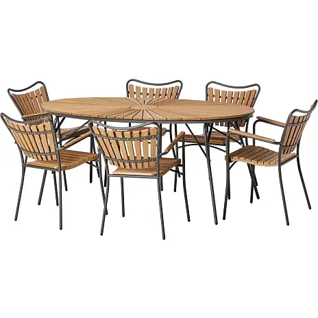 Bordpladen er lagt i et smukt solmønster, og med det slidstærke stel i rustfrit, pulverlakeret aluminium får Kerteminde nonwood-bordet et klassisk, eksklusivt look. Et smukt bord til dig, der ønsker rene linjer og plads til 6 siddende gæster i haven eller på terrassen.