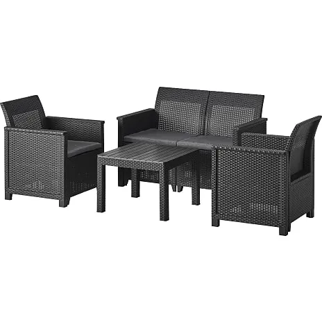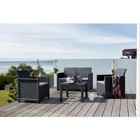 Dette nye Emma loungesæt passer perfekt til enhver anledning. Selv med begrænset plads kan du få din egen udendørs drøm opfyldt. Dette sæt er let at samle og der medfølger puder i polycotton.