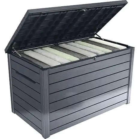 En hyndeboks beskytter dine hynder mod vind og vejr, så hynderne er klar til at tage frem, når solen igen viser sig på himlen.