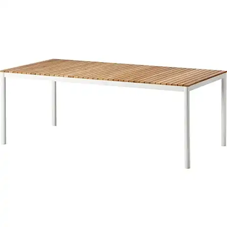 Mood bordet er en perfekt kombination af det bedste fra to forskellige stilarter. Det bløde og runde look fra de rustfrie aluminiumsbordben i antracit spiller perfekt sammen med de skarpe kanter fra den rektangulære teak-bordplade.