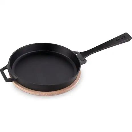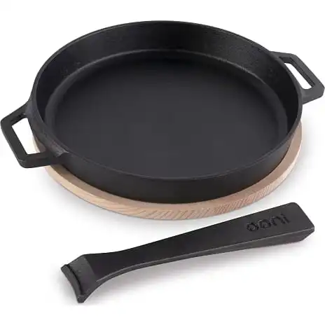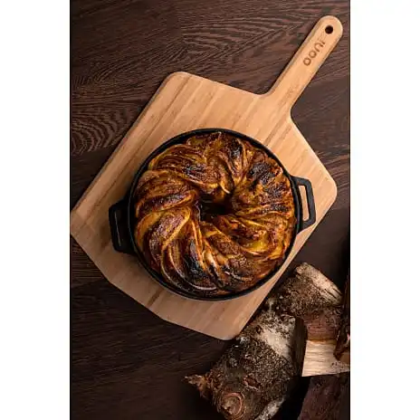 Støbejernspanden fra Ooni gør det muligt at tage din pizzaovn til næste niveau. Deep pan pizza, kød, grøntsager, fis og skaldyr tileredes med lethed direkte i ovnen med denne støbejernspande. Gør dig klar til en oplevelse udover det sædvanlige. Kan også bruges over eksempelvis bålstedet i haven. Der følger et aftageligt håndtag med så du let kan manøvrere med den brandvarme pande og et serveringsfad i træ som passer perfekt til anretning på spisebordet.