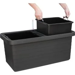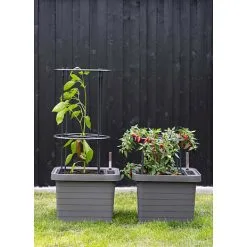 Kassen rummer cirka 18 ltr. muld og 9 ltr. gødningsvand. Fremstillet i kraftig antracit grå plastmateriale. Anvendes til dyrkning af grøntsager, krydderurter og blomster. Kassen har hjul, hvilket gør det nemt og fleksibelt at flytte den rundt på terrassen elle altanen.