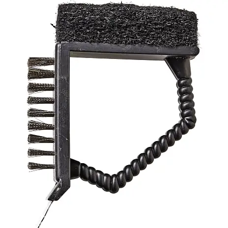 Grillbørste med 3 funktioner – skraber for enden til, at fjerne det værste fedt, stålbørste til, at rengøre grillens riste samt en svamp til at skrubbe med.