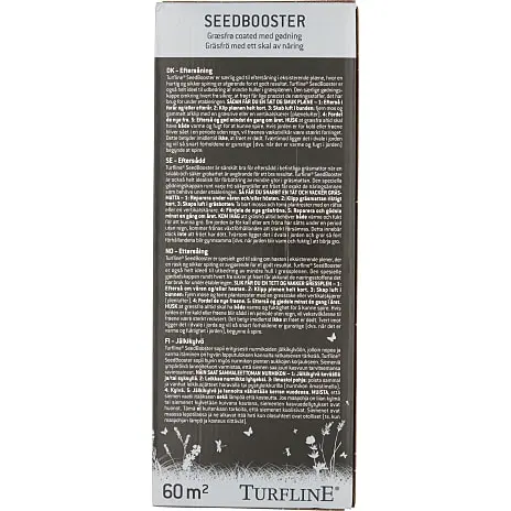 Turfline Seed Booster er især god til eftersåning eller reparation af græsplænen. Det specielle ved græsfrøblandingen er, at hvert enkelt frø er pakket ind i gødning. Det betyder, at de små græsfrø har præcist den næring, de har brug for, når de skal spire. Samtidig behøver du ikke bruge tid og penge på at gøde, efter du har eftersået eller repareret. Eftersåning/reparation: 100 g rækker til 5 m2.