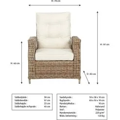| Havemøbel materiale | Polyrattan, Aluminium, Polyester |