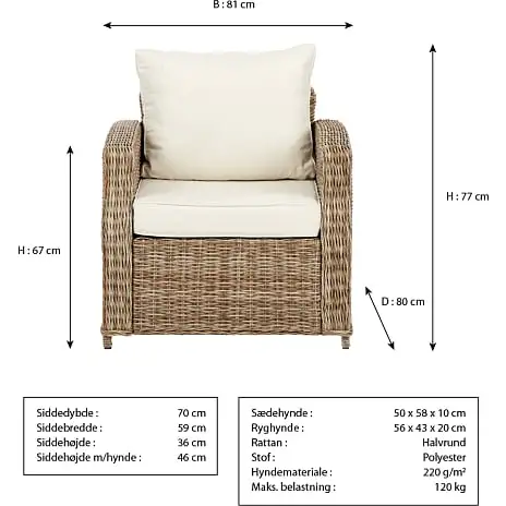 | Havemøbel materiale | Polyrattan, Aluminium, Polyester |