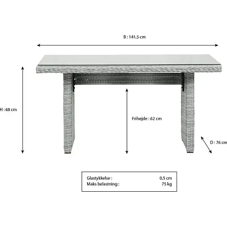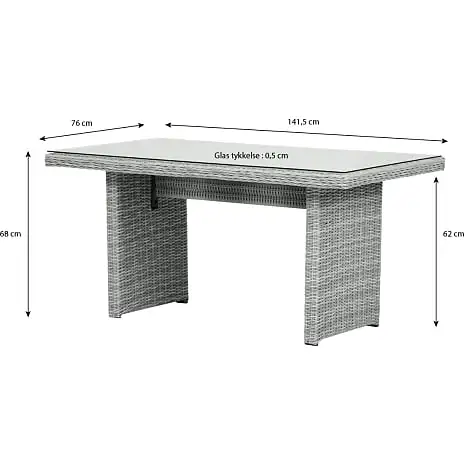 | Havemøbel materiale | Polyrattan, Aluminium, Glas |