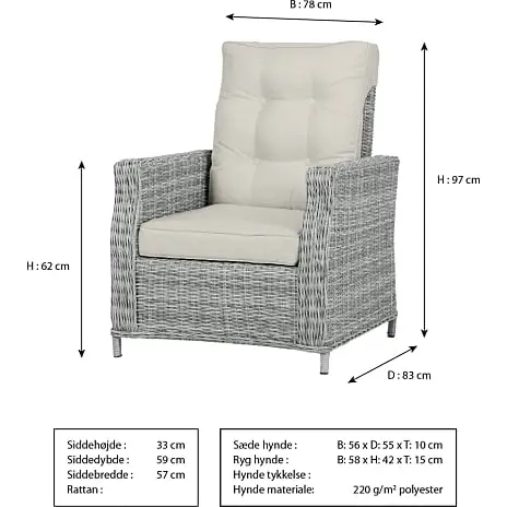 | Havemøbel materiale | Polyrattan, Aluminium, Polyester |