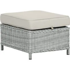 Sidebord i elegant look og vedligeholdelsesfrit materiale. Hvis du er til det klassiske og stilrene udseende, så er et Vila longebord lige noget for dig. Med et moderne brune rattan look, kan sidebordet pynte på enhver terrasse eller havestue. Sidebordet kan sammensættes med stole, sofaer og solsenge. Med den indvendige aluminiums ramme, har man en robust og holdbar ramme, hvor man udenpå har det klassiske og vedligeholdelsesfrie rattan og en flot glasbordplade. Med et moderne sandfarvede rattan look, kan fodskamlen pynte på enhver terrasse eller havestue. Fodskamlen kan bruges sammen med alle vila stole og sofaer, og kan anbefales at sætte til et Vila loungesæt, som den ekstra siddeplads rundt om bordet. Med den indvendige aluminiums ramme, har man en robust og holdbar ramme, hvor man udenpå har det klassiske og vedligeholdelsesfrie rattan og den bløde hynde på toppen. Vi anbefaler, at du opbevarer dine havemøbler indenfor i vinterhalvåret, eller benytter et overtræk for at forlænge sættets levetid.