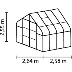 Leveres med dobbelte skydedøre. Derved er det lettere at komme ind i – så man let kan komme ind med f.eks. en trillebør. Udover nøjagtigt tilskåret glas leveres solbestandigt polycarbonat til de runde skuldre. Afhængig af størrelse leveres Diana med 2 oplukkelige vinduer. Leveres ekskl. sokkel.