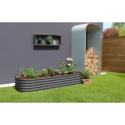 Smart konstruktion giver mulighed for at designe utallige former og faconer. Vitavia højbede er konstrueret af stærke profilerede paneler, der er lavet af Zincalume – stålelementer påført forzinket aluminium. Det giver en let, men alligevel meget stærk konstruktion med en utrolig flot finish og udstråling. Den antracitgrå lakering giver et elegant og eksklusivt udseende, der matcher næsten alt i din have eller på din terrasse. Alle Vitavia højbede har en sidehøjde på 40 cm. Vitavia højbed Basic 401 kan suppleres med lige og buede paneler. Disse kan sættes sammen i et utal af kombinationer. Vitavia højbede er vedligeholdelsesfri. Stålpladerne coates med Zincalume, der består af 55 % aluminium, 43,4 % zink og 1,6 % silikone. Zincalume er en særdeles effektiv rustbeskyttelse, der beskytter 3-4 gange bedre mod rust end galvanisering og tåler direkte kontakt med både jord, kompost og fugtigt træ.